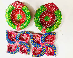 Description: For a festive and vibrant display without the DIY effort, these colorful, hand-painted clay diyas are a perfect choice. Each piece is adorned with intricate designs that will add a pop of color to your decorations.