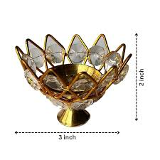 Description: The Collectible India Brass Crystal Oil Lamp refers decorative brass + crystal (or glass) diyas / akhand diyas (continuous‐flame style lamps) marketed by Collectible India. Add a touch of royalty with these stunning brass diyas featuring crystal accents. Their beautiful design is perfect for elevating your festive decor. The product is available in multiple shapes, sizes, and designs (round “kamal” bowl, oval lantern style, small & large dimensions). The product descriptions often assert that the lamp “does not get hot even after long hours of repeated burning.